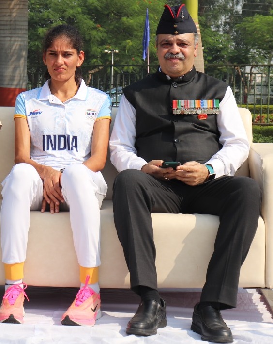 Ms Parul Chaudhary Asian Games 5000m Gold medalist with General Secretary, Shaheed Upwan Club on 21 October 23 celebrating Independence Day of United India